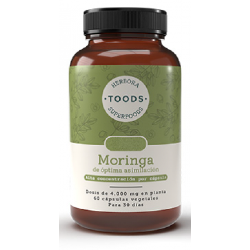 Moringa Herbora Toods Superfoods es un complemento alimenticio elaborado a partir de la moringa, una planta originaria de la India, valorada por culturas milenarias por sus propiedades medicinales y nutricionales. Sus hojas, semillas, corteza y raíces contienen una abundante cantidad de compuestos bioactivos, convirtiéndola en una fuente excepcional de antioxidantes, entre los que se destacan la vitamina C, el betacaroteno, la quercetina y el ácido clorogénico. Estos antioxidantes ayudan a combatir el estrés oxidativo y a proteger las células contra los radicales libres.
