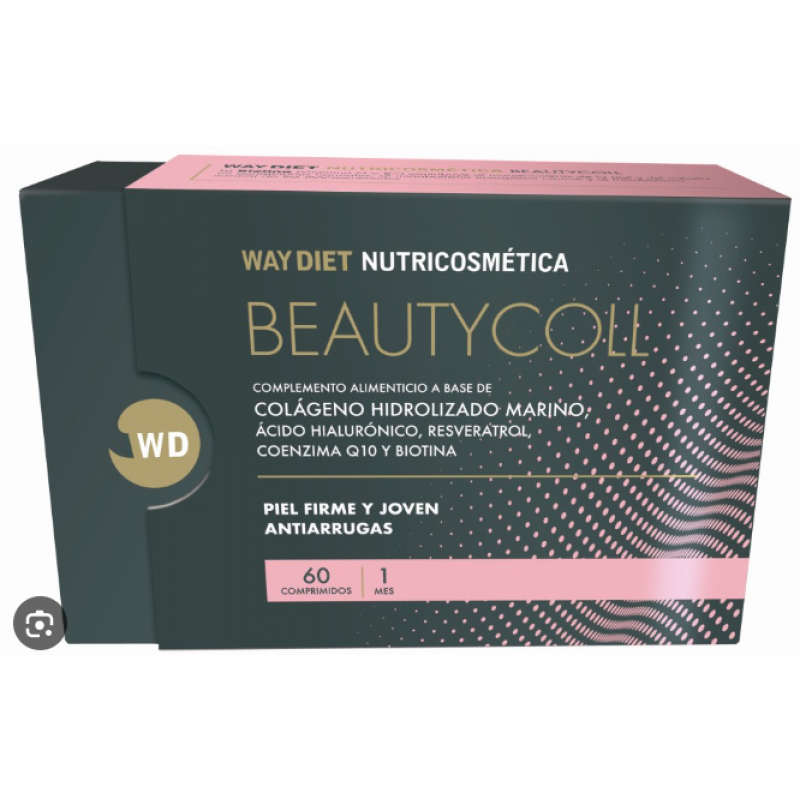 WAYDIET NUTRICOSMÉTICA BEAUTYCOLL es un complemento alimenticio que favorece la formación de colágeno en el cuerpo y ayuda a prevenir y mitigar arrugas y flacidez cutánea, así como a mantener las articulaciones lubricadas y flexibles.