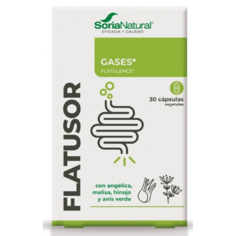 Flatusor de Soria Natural es un complemento alimenticio diseñado para aliviar los gases y reducir la hinchazón abdominal de forma natural y efectiva. Formulado con una mezcla de extractos vegetales de angélica, anís verde, melisa e hinojo, Flatusor trabaja para calmar el sistema digestivo y promover una digestión más cómoda y sin molestias.