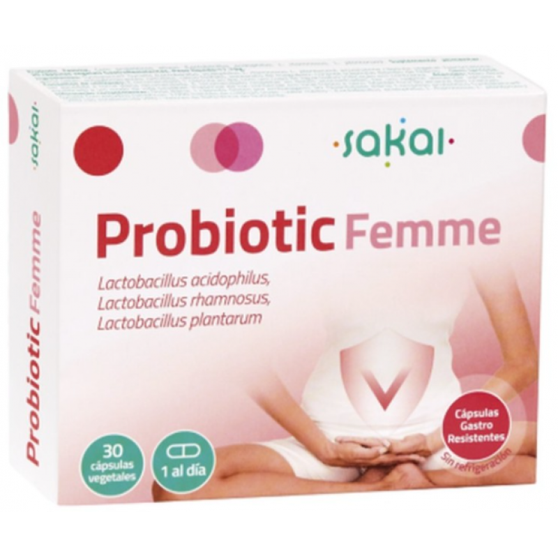 Probiótico Femme de Sakai Complemento alimenticio a base de SynBalance Gynelle® (Lactobacillus acidophilus, L. rhamnosus, L. plantarum). Protege tu flora íntima.